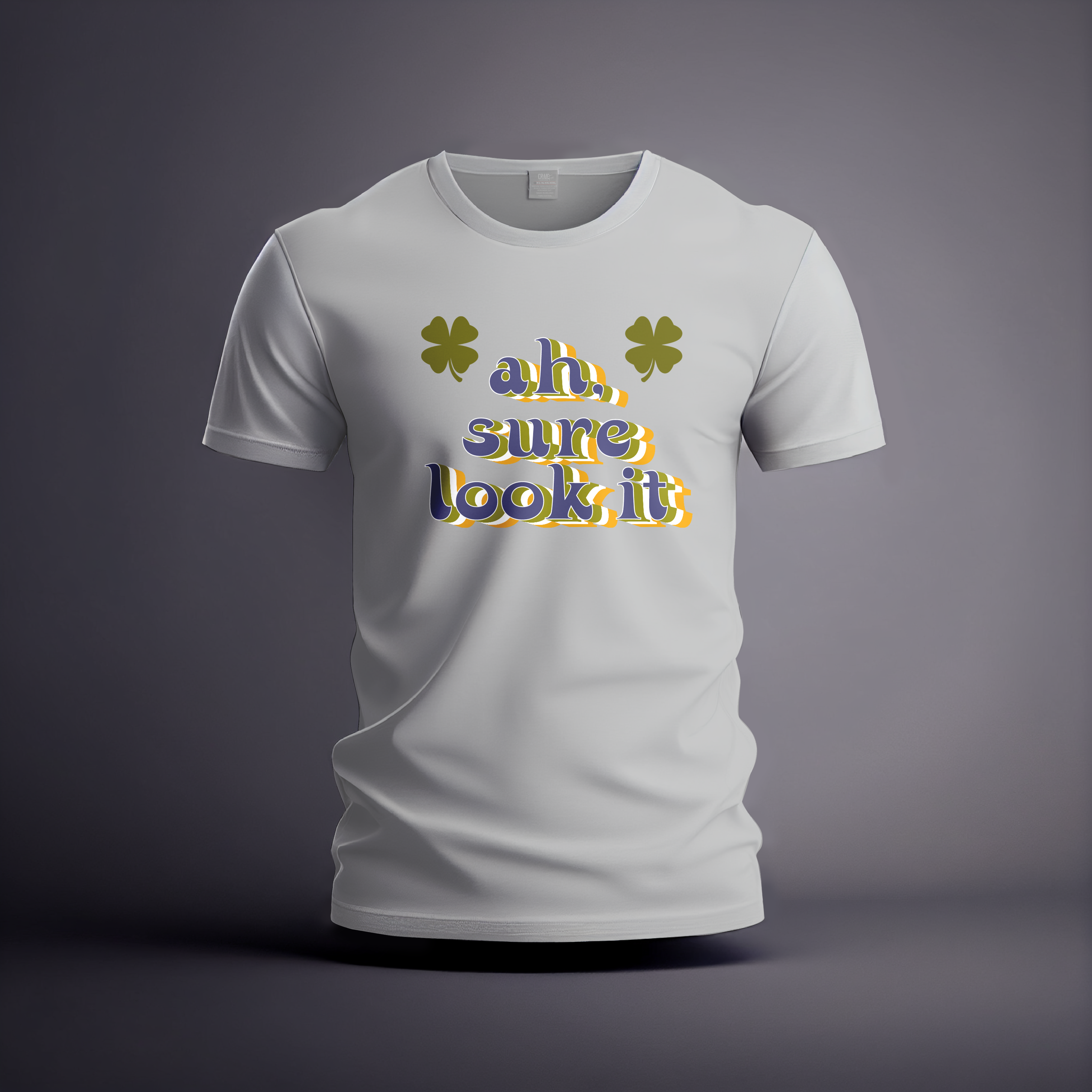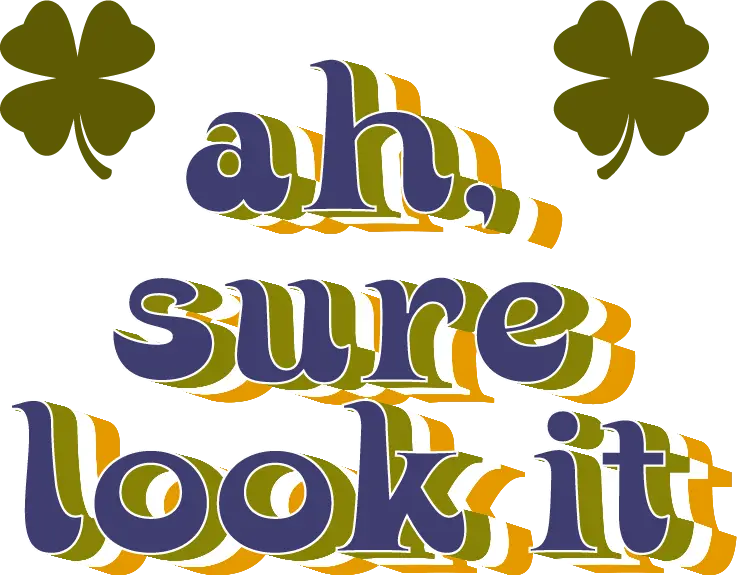 The ultimate expression of Irish fatalism and a guaranteed conversation starter. Our “AH, SURE LOOKIT” tee takes this iconic phrase and throws it into a maximalist 70s design. Featuring bold, warped, and clashing typography, this tee is built to stand out on the streets of Dublin.