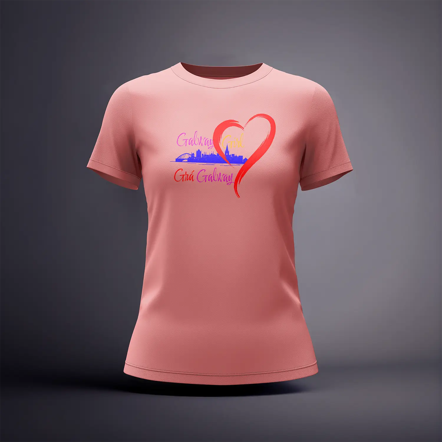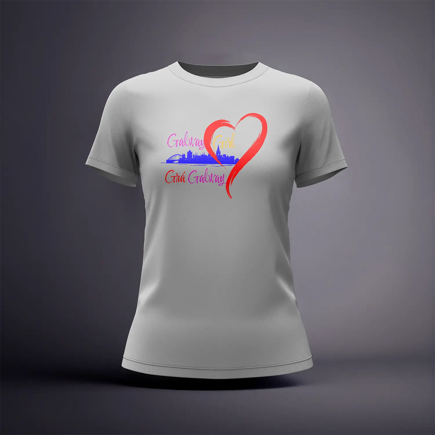 A brushed-heart illustration intersecting the Galway skyline. This design is for the girls who left their hearts in the West.