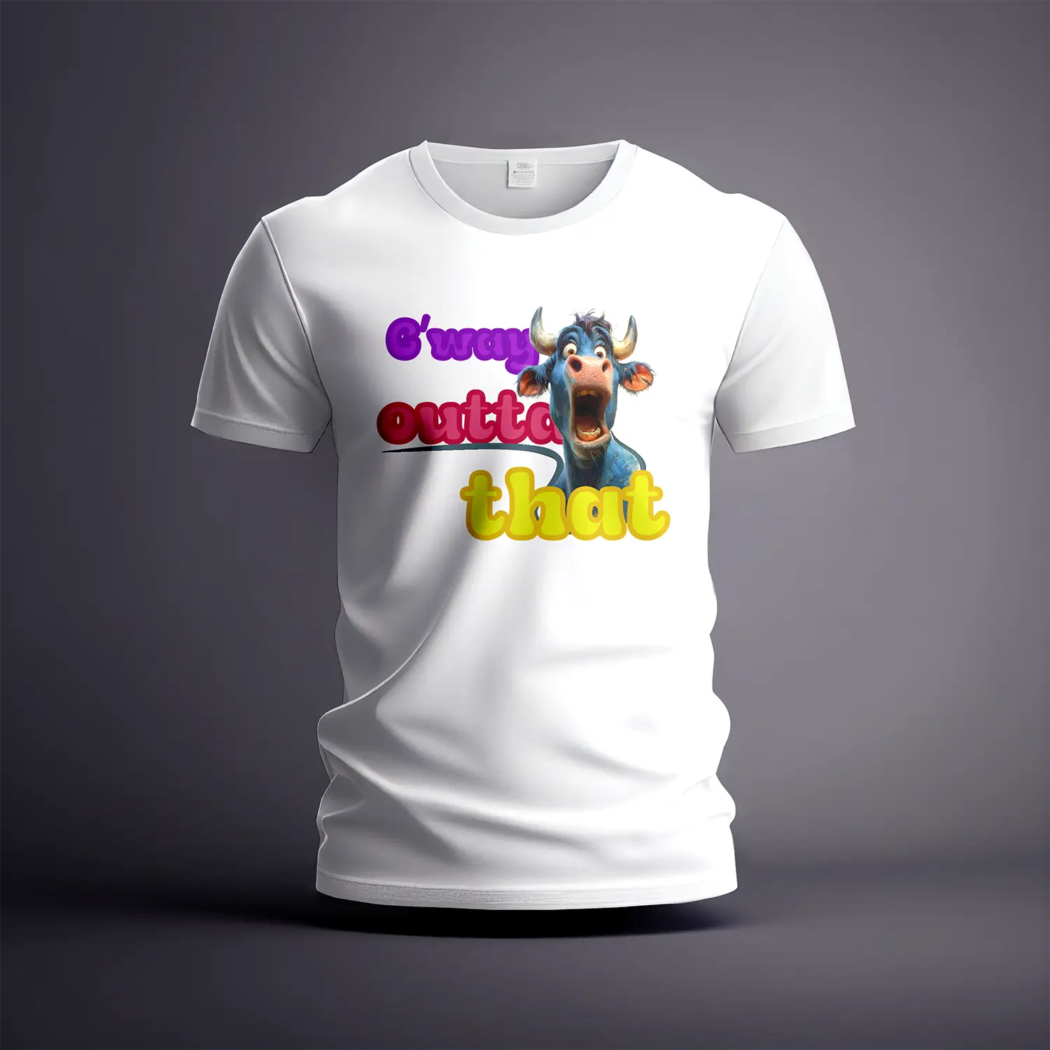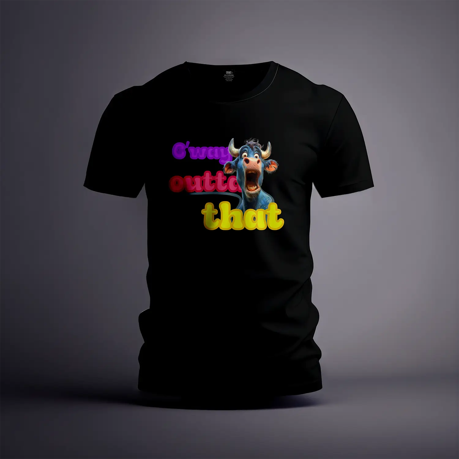 Sharp, high-contrast DTF printing makes the cow’s expression pop.